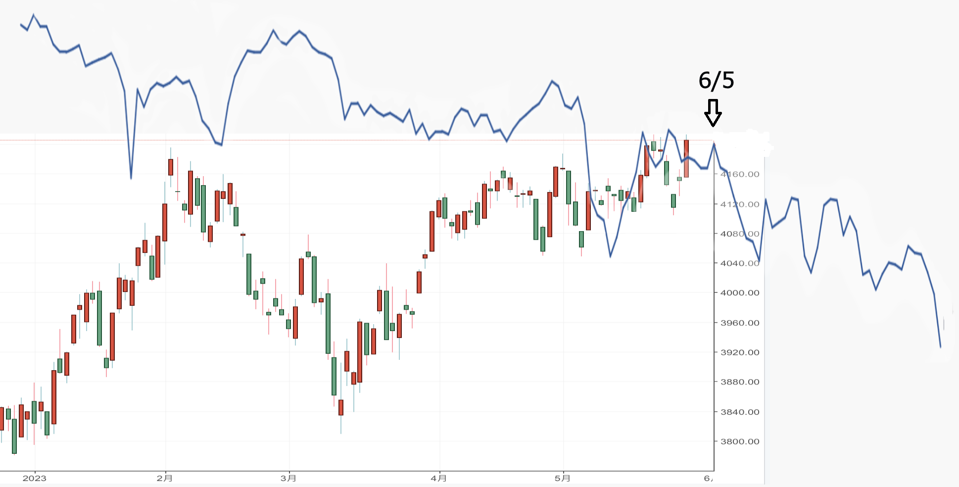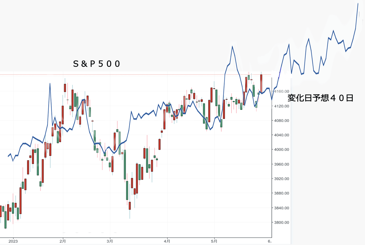 2023年05月29日 S&P500、40日先まで予想 S&P500の40日先までの変化日予想です。あくまでも変化日を予想したもので、上げ下げは予想しておりません。変化日予想を上下反転します。次の変化日は6月5日前後になると思いますが、そこが買いか売りかは分かりません。いずれかとしか言えませんが、その日が高値だと売り、安値だと買いでみています。 銘 柄ございませんので適当ですオリジン6513サニックス4651 カテゴリなしの他の記事