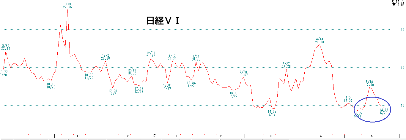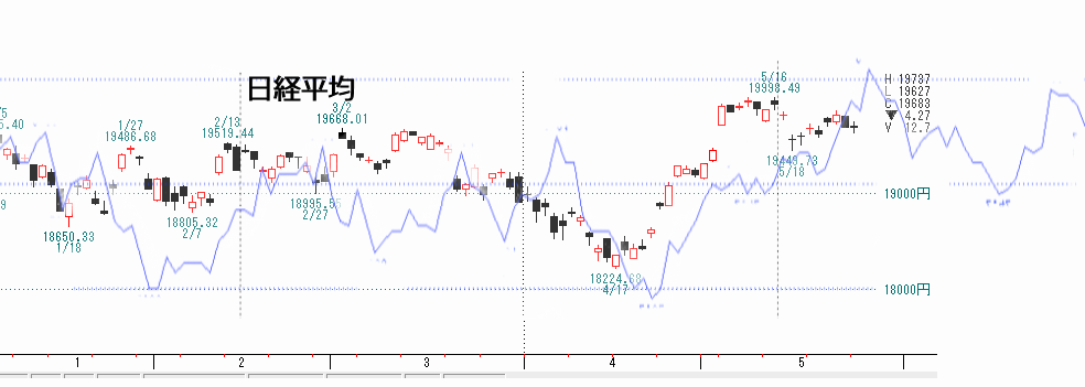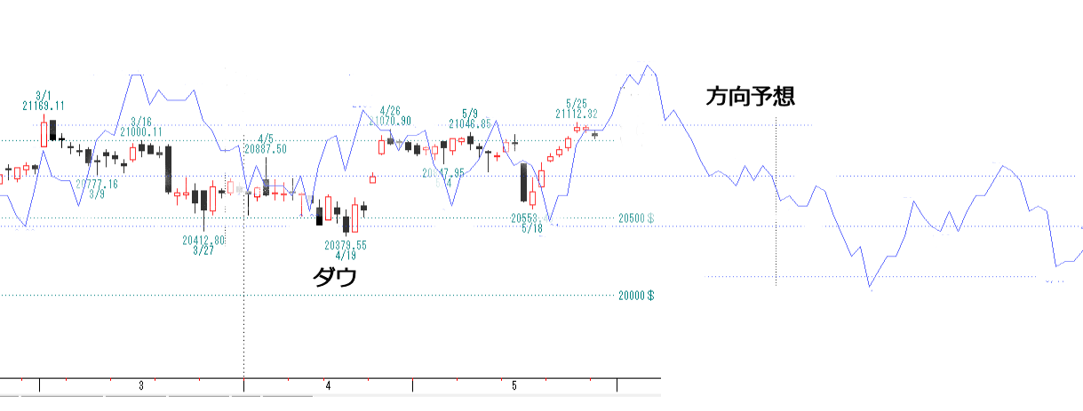 5月31日は当社独自によるNYダウ変化日に当たります。高値もみ合いがどちらへ行くのか。方向予想を2通り出します。