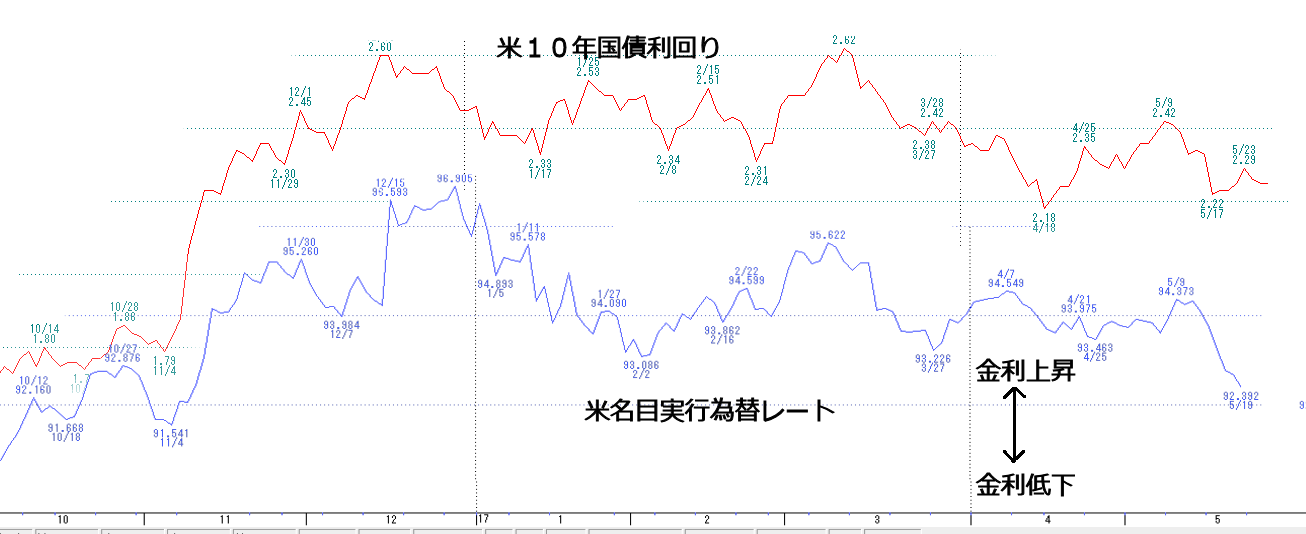上の予想では、今日から数日以内に調整入りですが、この可能性は20%以下です。米長期金利が急低下した場合はこの動きになりますが、可能性は極めて低いです。