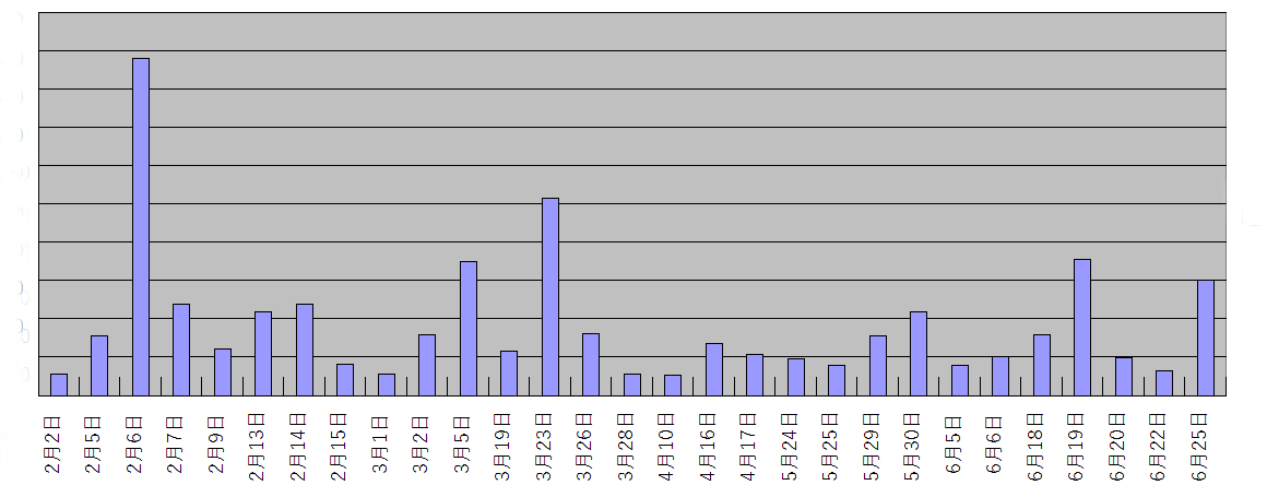 上は今年になっての主な追証件数発生日と件数のグラフです。6月19日で終わったと考えていたのですが、間違っていました。じわじわ真綿で首を絞めるような感じです。しかし、今のところ追証は新興・小型株に限られており、相場全体を崩すかというと疑問です。それもSNSで情報収集するはいいいが、撤退に躊躇する投資家が損失を拡大しているのだと思います。追証は1度発生した即切って維持率30%まで戻すのが鉄則です。不足金額を入金しても最後は損失拡大し、全部投げさされるってことも多々あります。