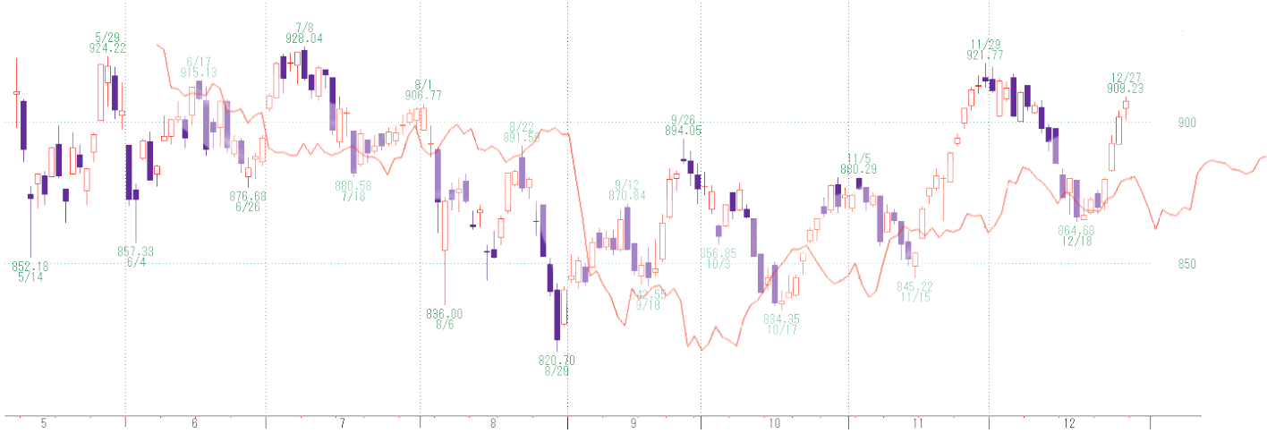 パカラ(4809)、日本コークス(3315)、国際紙パルプ(9724)、てけびし(7510)、フィールズ(2767)、帝国電機(6333)、広島ガス(9535)、松風(7979)、椿本興業(8052)、芝浦メカトロ(6590) など。これらは買われる可能性があるかもしれません。