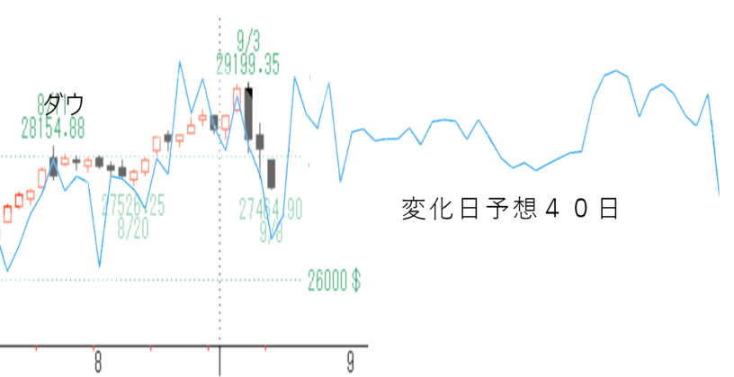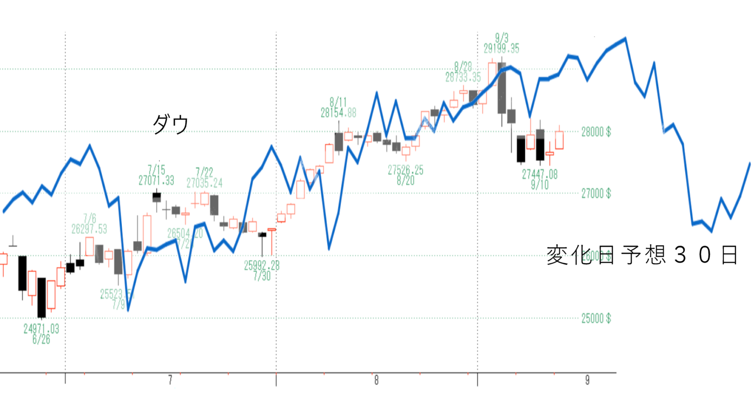 ダウの動きはほぼ予想通りにきています。日経平均はダウに連動すると仮定して予想しますが、明日からの動きは再度検証し、夜別ブログにUPしたいと思います。