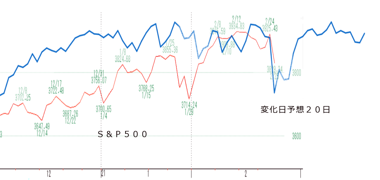 今回は複数の指数をミックスしてS&P500の約20日先までの変化日を予想しました。