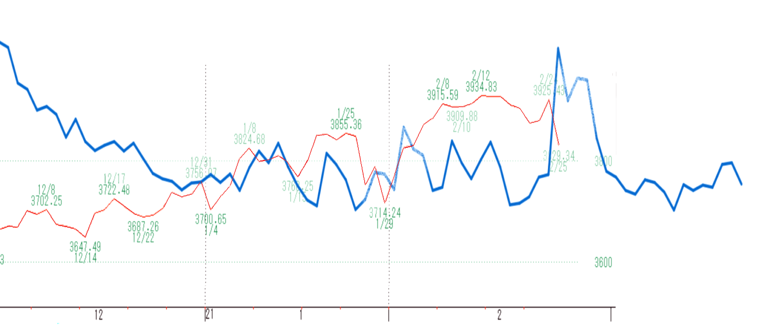 ところで、今日の寄り前に、456円安までとツイートしましたが、1202円安でした。差の746円はオーバーシュートと考えます。現在、先物は戻しており、現物終値より374円戻しています。オーバーシュートの約半値戻しです。数日で前値戻しの可能性があると思います。
