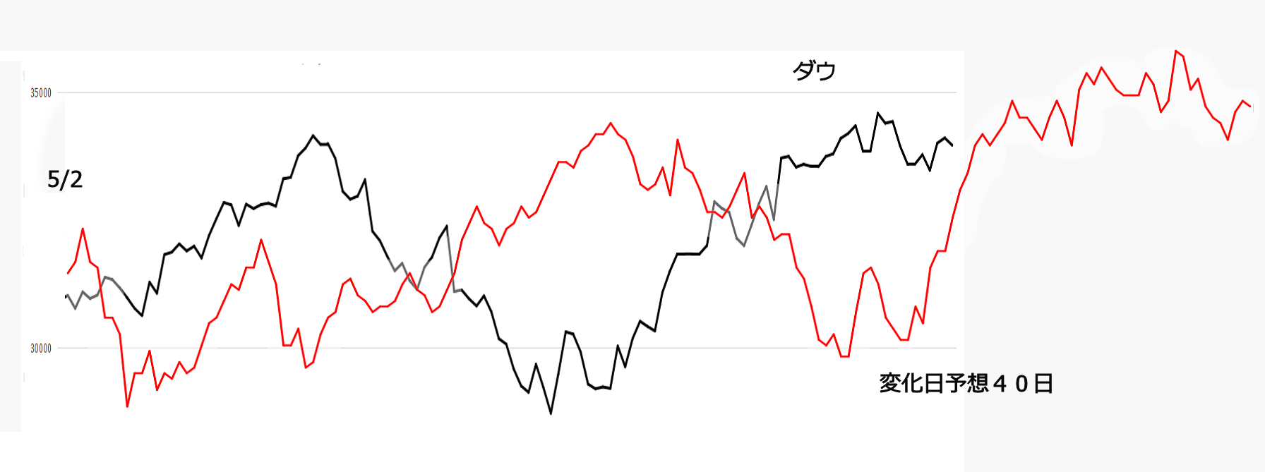 NYの40日先までの変化日予想です。10月に開発し、改良中です。