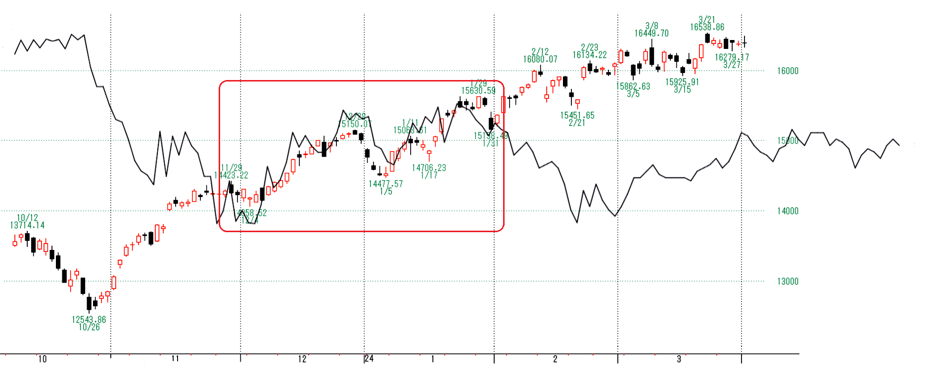 同じ動きになりました。これだと数日調整も買い接近になります。